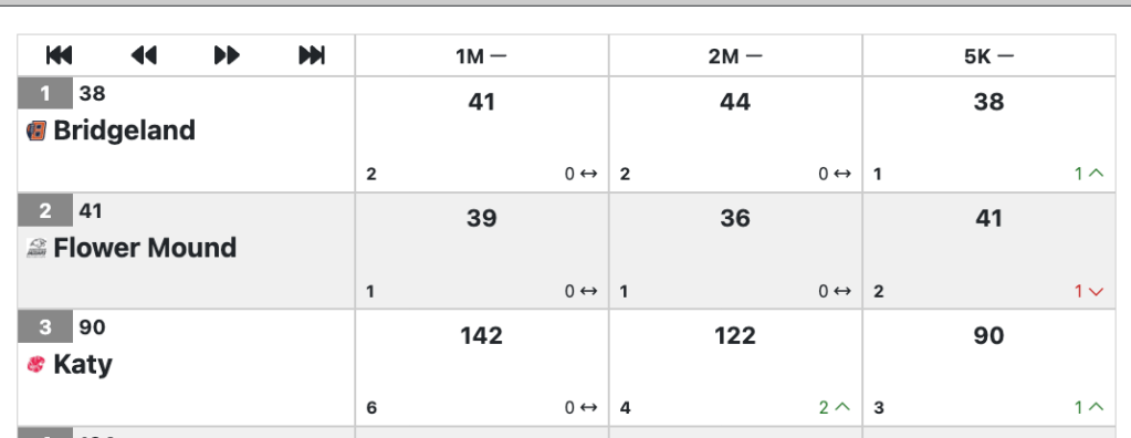 After our state meet in Texas we had three weeks till the NXN South Region race. When you have a race that requires all of your physical and emotional energy I feel it’s important to be careful the following week. We kept our mileage consistent, but dialed down the intensity. The one workout we had was a 3-2-1 fartlek on the grass for 30 minutes. We usually are more structured in our workouts, but I felt it was important to let our athletes go more by feel. The three and two minute repetitions around tempo pace and the 1 minute repetitions close to 5k race pace. In between the repetitions a 1 minute easy jog to allow adequate recovery. In addition to the one fartlek workout we also had a medium long run on a hilly route in Flower Mound.